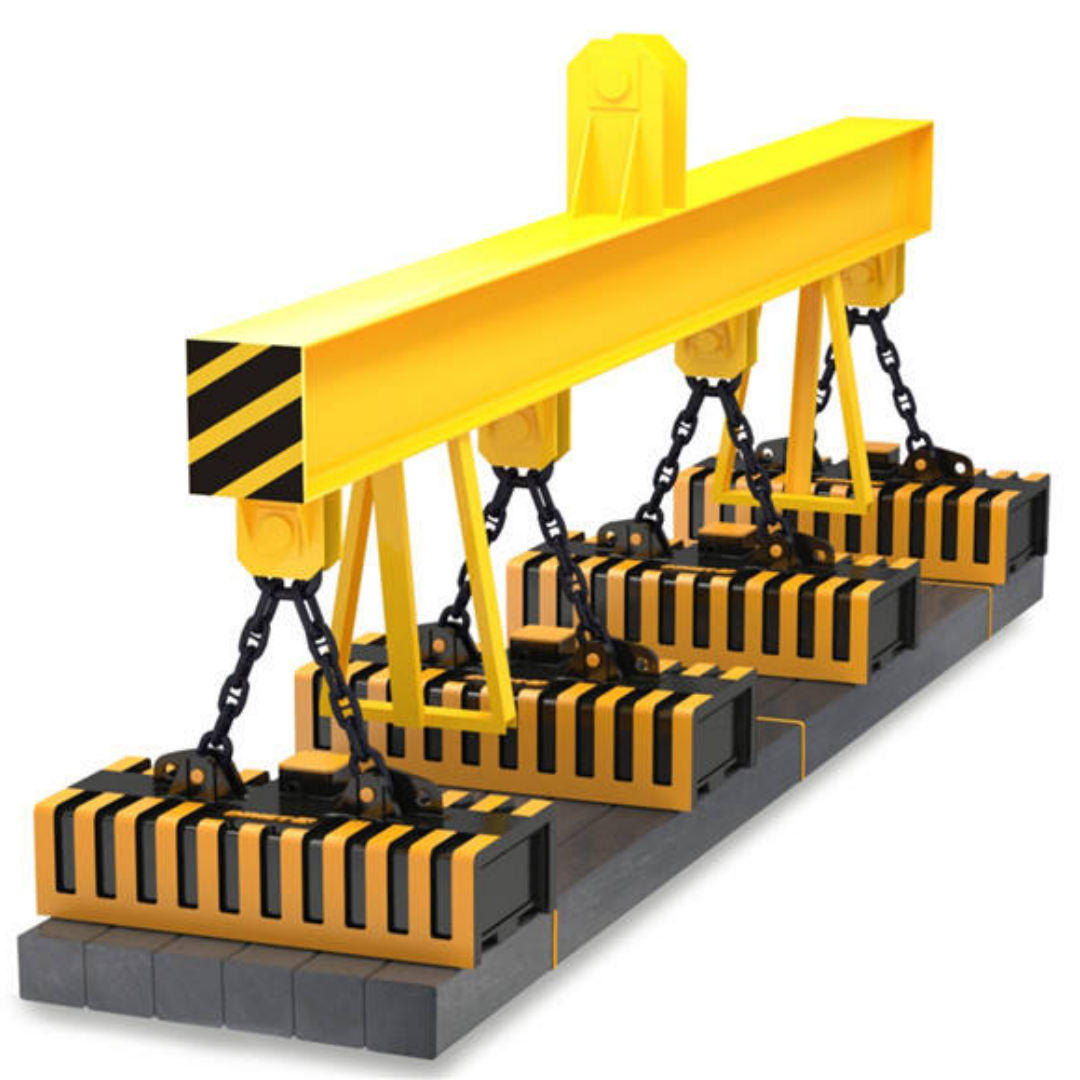 電磁吸盤吊具:通電產(chǎn)生磁力吸附鋼板,適配鋼材堆場(chǎng)、剪板機(jī)上料,斷電時(shí)需配備備用吊索防止墜落;