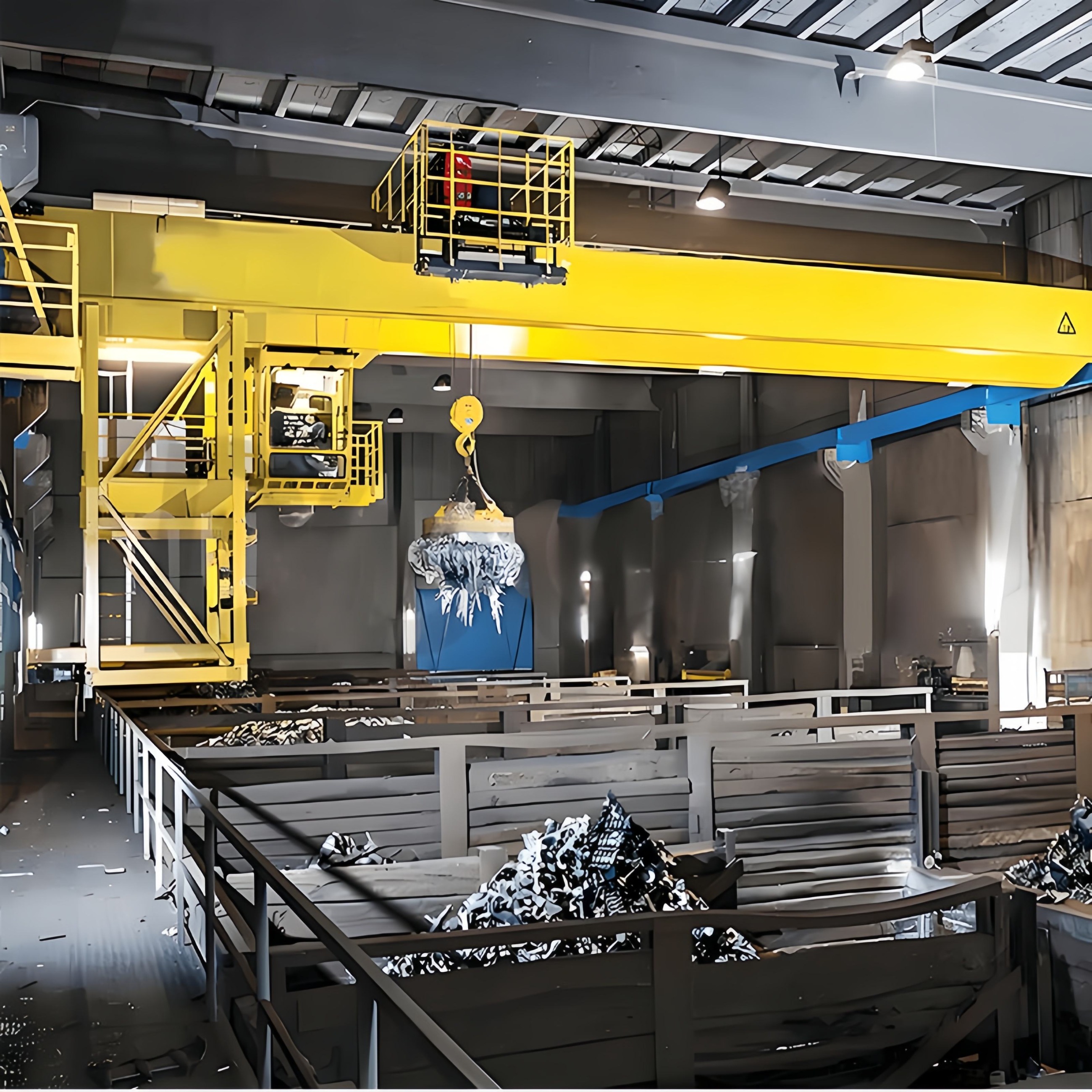 適用干冶金工廠在室內(nèi)或露天的固定跨間較繁重地裝卸及搬運(yùn)具有磁性的黑色金屬制品與材料(如鋼錠、型鋼、生鐵塊)在機(jī)械廠。庫房中也常有來搬運(yùn)鋼料、鐵塊、廢鐵、廢鋼、鐵屑等物料。
