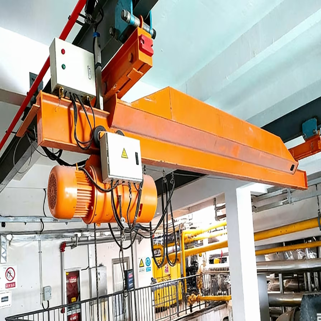 懸掛裝置:通過車輪組直接懸掛在廠房頂部的工字鋼軌道上,車輪與軌道間隙 3-5mm,確保運(yùn)行平穩(wěn)
